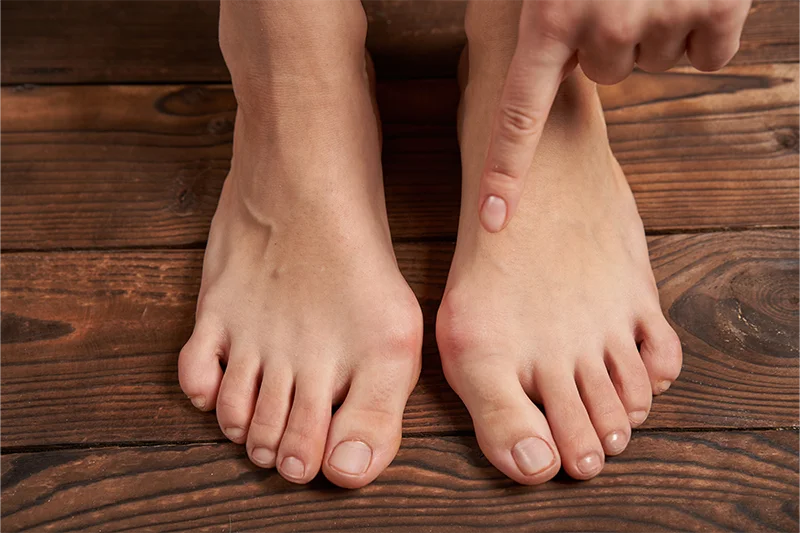 - Încălțămintea necorespunzătoare: Pantofii înguști sau cu toc înalt pot agrava deformarea piciorului.