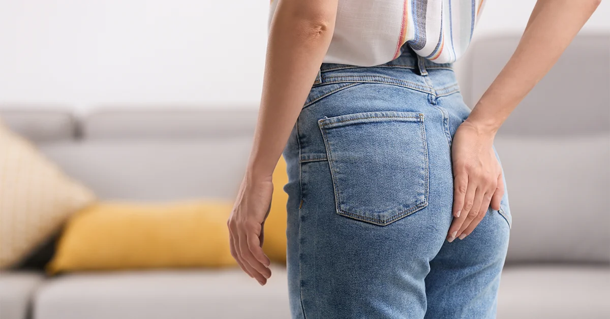 Femeie cu disconfort anal, simptome asociate afecțiunilor proctologice, tratament laser la Clinica VenArt Cluj-Napoca și București